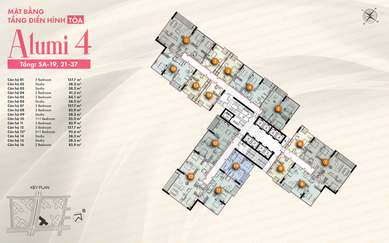 Hướng đến chuẩn mực sống riêng tư và đẳng cấp, phân khu Alumi được tinh tế quy hoạch với 07 tòa tháp căn hộ biệt lập, tạo nên một quần thể sống hài hòa và thượng lưu. Mỗi căn hộ tựa như một “viên ngọc quý” được mài giũa tỉ mỉ, phản chiếu vị thế và gu sống của những chủ nhân xứng tầm.