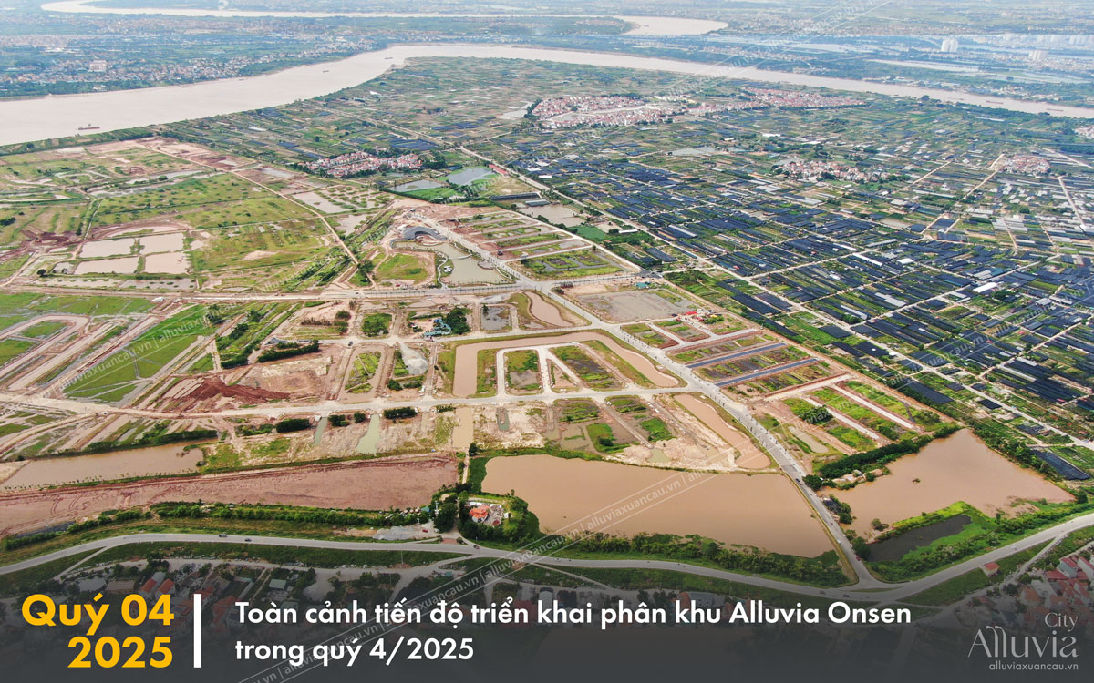 Trong quý 3/2025, tổ hợp Alluvia City đã ghi dấu những bước triển khai thần tốc. Hạ tầng tại cả ba phân khu Alluvia Onsen, Alluvia Island và Alluvia Yacht được đồng loạt khởi động và nhanh chóng thành hình, định hình diện mạo khu đô thị sinh thái ven sông. Song song đó, tổ hợp nhà mẫu Alluvia Gallery cũng đã hoàn tất toàn bộ hạng mục ngoại thất và đang bước vào giai đoạn hoàn thiện cuối cùng, sẵn sàng mở cửa chào đón khách hàng trải nghiệm trong thời gian tới.